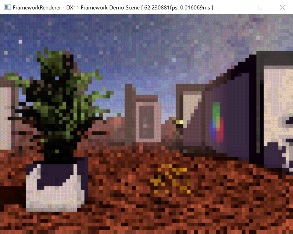 the stylised mode features SSAO, sharpen, depth fog, and an ASCII shader overlay. it also adds a skybox background.